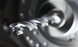 The drill’s flutes are highly polished after final machining, a process that Kennametal has found greatly improves chip evacuation and reduces washout near the tip. And instead of the two coolant holes found in most modular drill designs, the KenTIP FS has four – two at the tip and two in the chip gullet directly behind the head. This multi-coolant approach provides greater coolant volume to prevent chip packing while simultaneously drawing heat away from the cutting zone, prolonging tool life and improving hole quality.